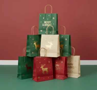 Are you ready for the next big leap? Start thinking about your packaging with lamination, foil covering, spot UV enhancement, and holographic materials or designs for a special look for your time. Contact us today to get custom paper bags that will support your brand’s growth in the holiday market, which is quite competitive. Infuse your holidays with a packaging that leaves a strong impact and is unforgettable!