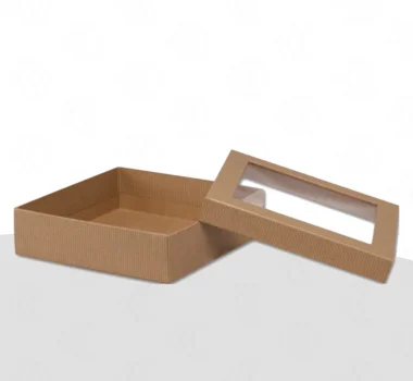 At PB, we provide a Kraft box with clear lid in various styles. Such as flip top, window box style, or tuck end sleeve. Include custom inserts to get a perfect product fit, and give your items extra product support. Also, acquire a premium unboxing experience using our kraft gift boxes with lids.
